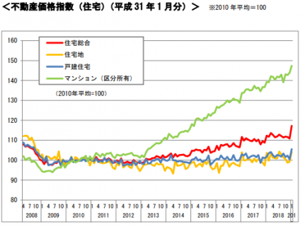 一方、下記は不動産価格を指数化したグラフ。