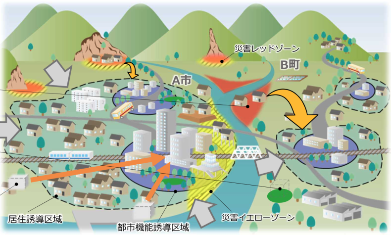 コンパクトシティとは、居住誘導区域や都市機能誘導区域などを定め、人が住むエリアや商業エリアをできる限りまとめ、街をコンパクトにする取り組みです。街の中心となるのは、やはり駅です。人が減っていく場所では、バスの運行本数が減り、商業施設が減り、空き家ばかりが増え……次第に不動産価格は下落していくものと考えられます。