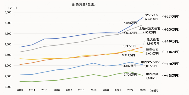一方で、新築住宅は全体的に高騰傾向を維持しており、とくに新築マンションの高騰率は著しいものがあります。東京23区の新築マンション価格の平均値は、2023年に1億円を突破しました。